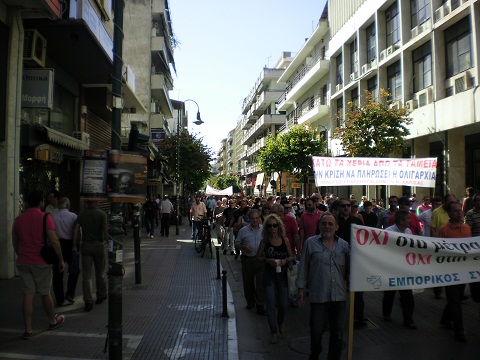 ομιλία εκφώνησε ο πρόεδρος του ΕΚΛ Τάσος Τσιαπλές.Στην πλατεία ταχυδρομείου, εκτός των δημοσίων υπαλλήλων συμμετείχαν οι έμποροι, οι επαγγελματοβιοτέχνες, ο ΣΥΡΙΖΑ, γιατροί, δικηγόροι, πολιτικοί μηχανικοί, εκπρόσωποι των Ανεξάρτητων Ελλήνων.